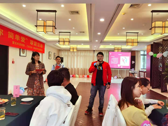 上午9:48,活(huo)動(dong)正式開始,主持(chi)(chi)人(ren)簡單介紹(shao)了活(huo)動(dong)流程,包括自我介紹(shao)、浪(lang)漫游戲、集體就餐等環節(jie)。聚光科技工(gong)會副主席、新業務(wu)黨支部(bu)書(shu)記保長(chang)先致(zhi)詞,他(ta)表示,聚光科技是一個溫暖有(you)情懷的公司,堅(jian)持(chi)(chi)每(mei)年聯(lian)合杭州的企事業單位舉辦聯(lian)誼活(huo)動(dong),希望能夠用實際行(xing)動(dong)幫(bang)助員工(gong)完成人(ren)生大事,并(bing)預祝大家可以在此找到心儀(yi)的另一半。