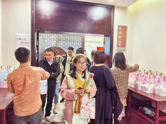 最(zui)后,大家(jia)集(ji)體就餐,為鼓勵大家(jia)抓(zhua)住(zhu)最(zui)后的機會邁出勇敢的一(yi)步,男女嘉賓可(ke)拿(na)上(shang)玫瑰花(hua)送給心儀的對象,表明心意,現(xian)場有多位男女嘉賓通過(guo)送花(hua)相(xiang)互留下了(le)聯系方式,并表示會給彼此一(yi)個了(le)解交往的機會,也感謝聚光主辦方提供的相(xiang)識(shi)機會和(he)工作人員的辛苦付出。