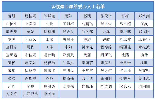 附:認領微(wei)心愿的(de)愛(ai)心人士名單