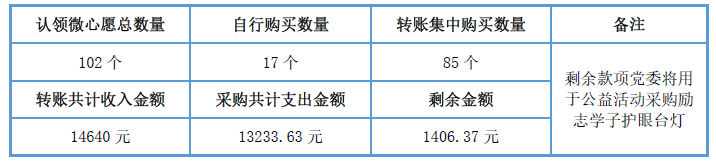 微心愿征集(ji)活動在公(gong)司OA發(fa)布的兩天內,近一半的微心愿被認(ren)領,讓我們感受到(dao)聚光人(ren)對于此次愛心活動的積極參與(yu)。還有一些同事直(zhi)接超出心愿金額(e)轉賬到(dao)支部的統一賬號,想多盡一份力量,這些愛心款項支部也(ye)都(dou)購買了相關學(xue)習生(sheng)活用品送到(dao)對接學(xue)校。