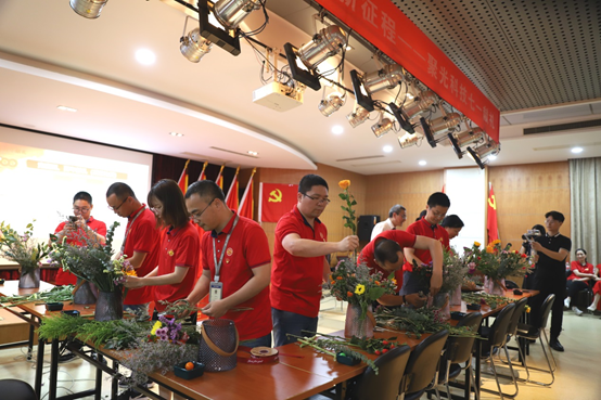 百年獻禮(li),花(hua)藝比拼(pin)。10位嘉(jia)賓抽(chou)簽(qian)決(jue)定(ding)自己所代表(biao)支(zhi)部(bu)(bu),抽(chou)簽(qian)結果最后公布,讓整(zheng)個過程(cheng)充滿了懸(xuan)念(nian)。嘉(jia)賓們紛(fen)紛(fen)講述創作理念(nian),“鮮(xian)花(hua)圍繞(rao)中心的紅(hong)花(hua)象(xiang)(xiang)征(zheng)(zheng)著中國(guo)人民團結在中國(guo)共產(chan)黨(dang)身(shen)邊”“百花(hua)齊放,56個民族,56朵花(hua),象(xiang)(xiang)征(zheng)(zheng)著中華民族大團結”“鮮(xian)花(hua)的錯落有致意味著碩果累累節(jie)節(jie)高”“一(yi)顆紅(hong)心永向黨(dang),兩手十拳為聚光,三(san)省吾(wu)身(shen)創佳業,萬眾一(yi)心恒久長”……精彩連(lian)連(lian),大家現場(chang)投票,最后懸(xuan)念(nian)揭曉,由陳(chen)熒(ying)平書記代表(biao)的工業黨(dang)支(zhi)部(bu)(bu)獲得第一(yi)名。