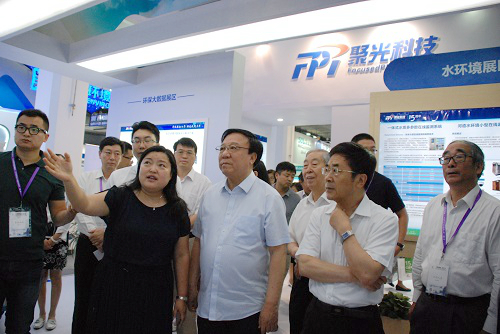 全國人大環境資源保護委員會主任陸浩、副主任委員王慶喜一行在總經理彭華女士陪同下參觀聚光科技展臺