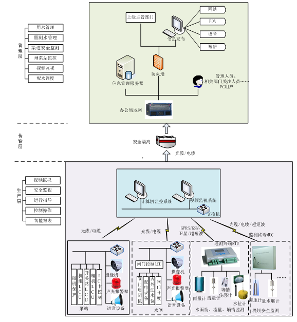 東深灌區智能化監測與管理系統集信息采集、業務管理為一體。通過建立灌區水位、流量、水質等水情監測系統,泵站、閘門等水利設施自動控制系統,并在此基礎上實現智能化業務管理系統,解決了灌區工作人員在信息采集、量測水管理、水費計收、配水調水等方面的管理問題。實現了灌區水資源的合理配置、優化調度、高效利用的目標。