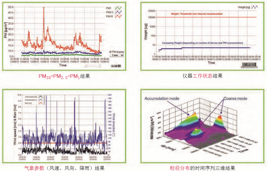 GRIMM粒徑譜儀應用軟件,基于LabView開發,具有強大的數據展示和處理功能,可通過圖形與表格的形式展示多種復雜的數據信息,包括顆粒物全譜粒徑分布、超細粒子數濃度、PAH濃度或SVC濃度等。