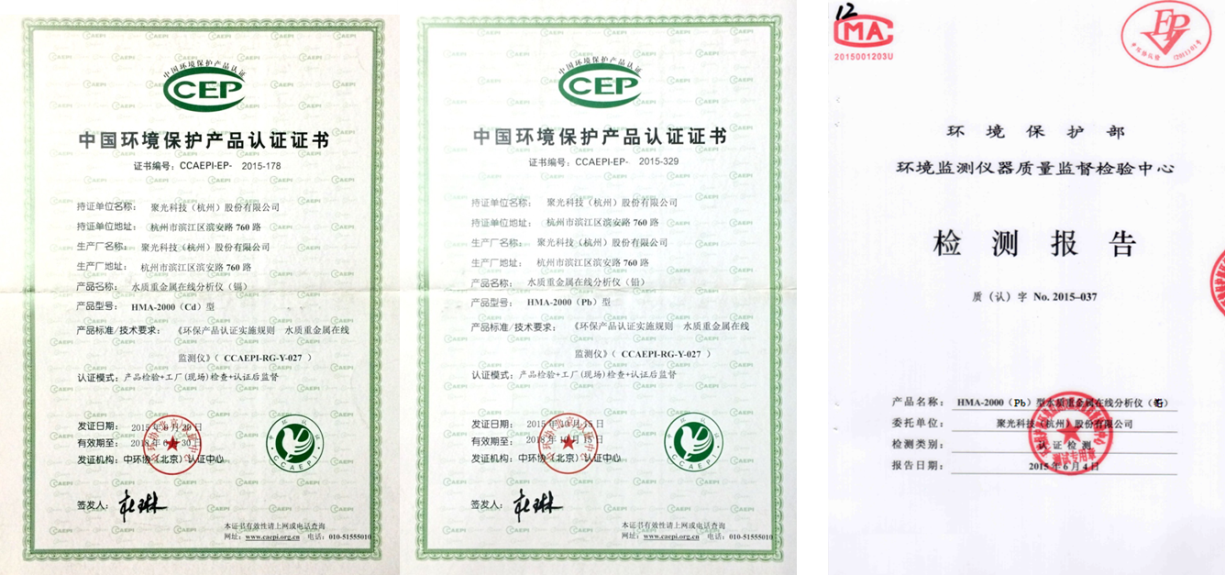 聚光科技低量程型水質重金屬在線分析儀(鉛)首批通過環保認證檢測