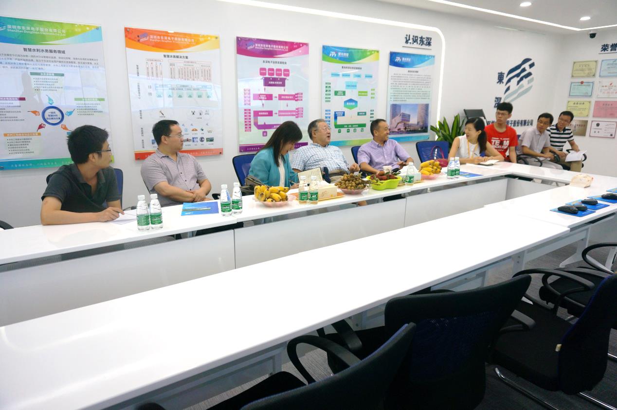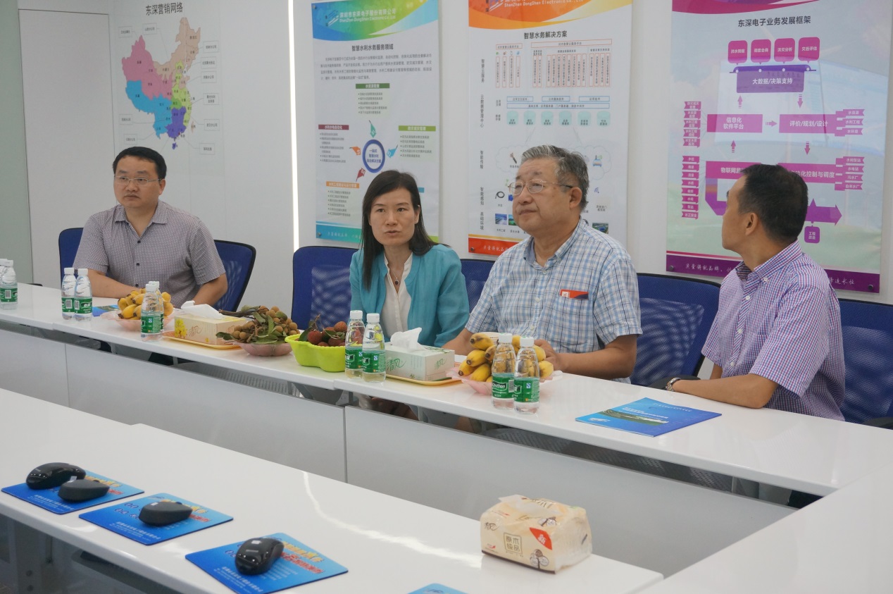 2016年7月15日,中國工程院院士、中國水科院水資源研究所名譽所長王浩院士蒞臨東深電子參觀指導。東深電子總經理郭華、研發中心副總經理張奕紅等全程接待。