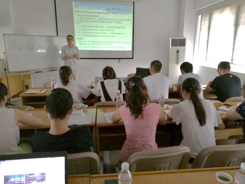 娃哈哈集團是吉天儀器生產的原子熒光光度計的老用戶,全國各子公司的檢測實驗室都有吉天儀器的原子熒光儀器,用于檢測娃哈哈集團生產的奶粉、營養品等食品中重金屬的含量。這次來參加培訓的也都是一線的使用人員。8月15日上午,吉天儀器的技術工程師為參會人員進行了原子熒光光度計的技術培訓,培訓課程包括:原子熒光光度計的結構和原理、原子熒光光度計的應用方法、儀器的日常維護和故障排除方法等。