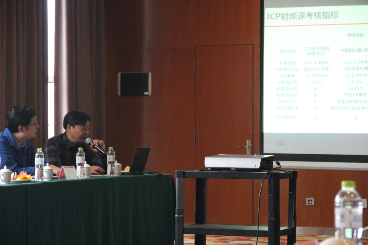 中國地質大學(武漢)金星教授向各位領導及專家組就項目總體情況進行了介紹,本專項重點研制具有自主知識產權、達到國際一流水平的自激式全固態ICP射頻源設備,在此基礎上進行工程化、產業化,同時建立一條規模生產線,年產能達500臺套,項目完成后3年內年銷售量300臺套以上,支持ICP類分析儀器銷售500臺套。