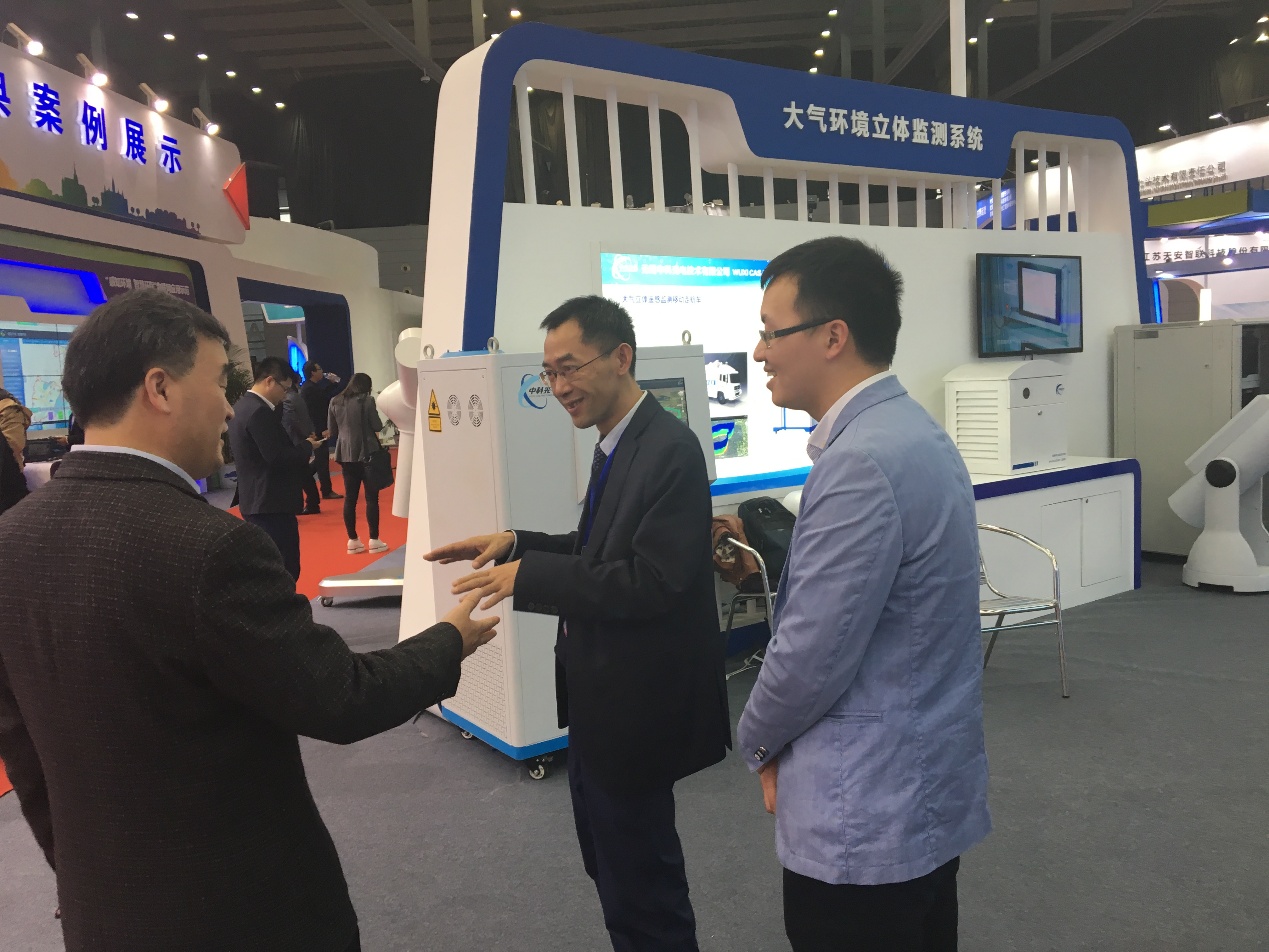 中科光電近年來發展迅速,已成為大氣環境監高端設備標桿企業,公司自成立以來已獲得國家專利二十余項、軟件著作權二十余項;核心產品市場占有率已達70%以上。展出期間無錫市環保局局長葛恒顯對展臺所展出的大氣顆粒物激光雷達、高能掃描雷達以及多軸DOAS進行了仔細詢問,對中科光電大氣環境立體監測系統的組成以及在大氣環境監測方面的一些具做法表示非常贊賞,希望中科光電在萬學平總經理的帶領下繼續奮勇前行!