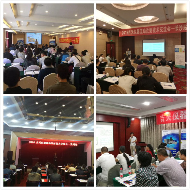 2016年隨著吉天儀器流動注射分析儀用戶的不斷增加,用戶對此類儀器的技術培訓需求迫切,吉天儀器經過一個多月的策劃與籌備,于2016年9月在北京舉辦流動注射技術交流會,至此流動注射全國巡回技術交流會正式拉開帷幕,而后吉天儀器團隊兵分兩路奔赴長春、鄭州、福州、呼和浩特等十余個城市,展開為期三個月的全國“巡演”。所到之處覆蓋黑吉遼、京津冀、江浙滬、鄂豫皖等十余個省,輻射東、北、西北、中原、西南、東南等區域,最終在美麗的重慶落下帷幕。由于時間關系,部分未涉及到的省市將排在明年推廣計劃當中。