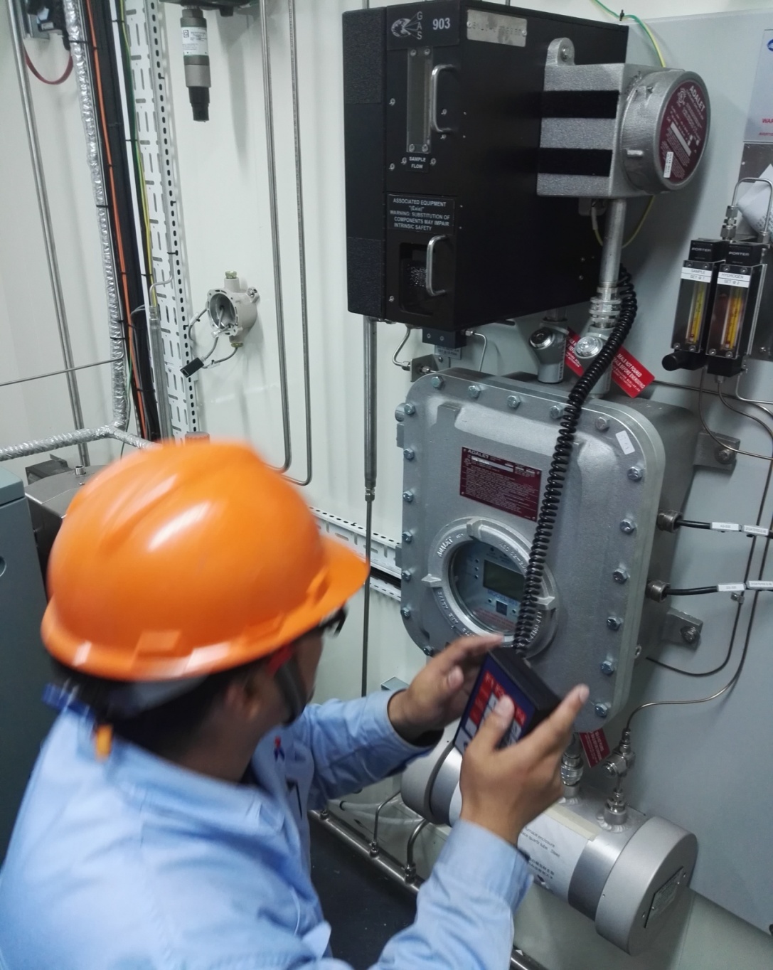 在高質量完成自身合同范圍內在線分析儀表維護維修工作同時,項目部運維工程師急客戶所急,主動協助客戶處理合同范圍外在線分析儀表維護維修工作。在項目開車進行到凈化合成工段時,該工段的總硫分析儀無法正常投用,可能引起合成工段催化劑中毒,導致整個工藝無法繼續進行。當時總硫分析儀廠家售后技術人員未到達項目現場,該工段的在線分析儀表維護維修框架單位的現場人員也沒有能力進行維護維修工作,于是機電儀中心的分析班長找到聚光科技運維人員,希望能夠幫助解決問題。聚光科技項目部運維工程師立即趕赴了現場,對分析儀表流路進行檢查,對加濕器和測量紙帶進行安裝,同時對分析儀表進行了校準,最終分析儀恢復正常使用,讓開車得以延續進行。