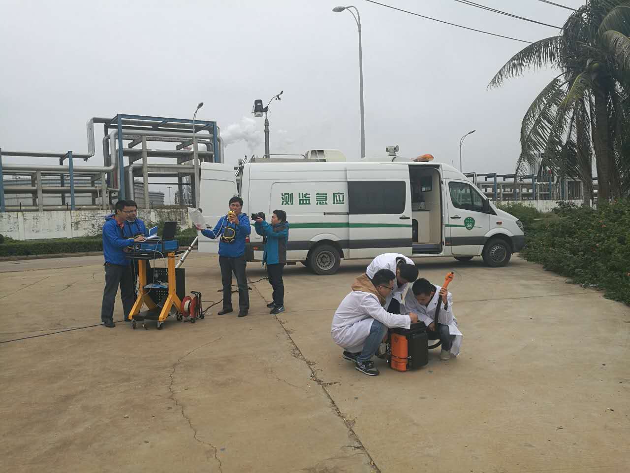 12月16日上午,海南省環境監測中心站下達啟動應急指令:煉化廠發生緊急泄露事故,需要現場進行污染空氣的連續監測。接到指令后三輛應急監測車從省站出發,10時左右抵達海南煉化廠界,根據預先制定的應急監測方案,現場技術人員分別在三個監測地點開展監測工作。洋浦區環監站攜帶聚光科技Mars-400 Plus便攜式氣質聯用儀抵達監測地點,開機預熱后直接采集現場空氣并連續進行了多次分析,快速得到檢測結果,并根據結果給予處理建議和指導。