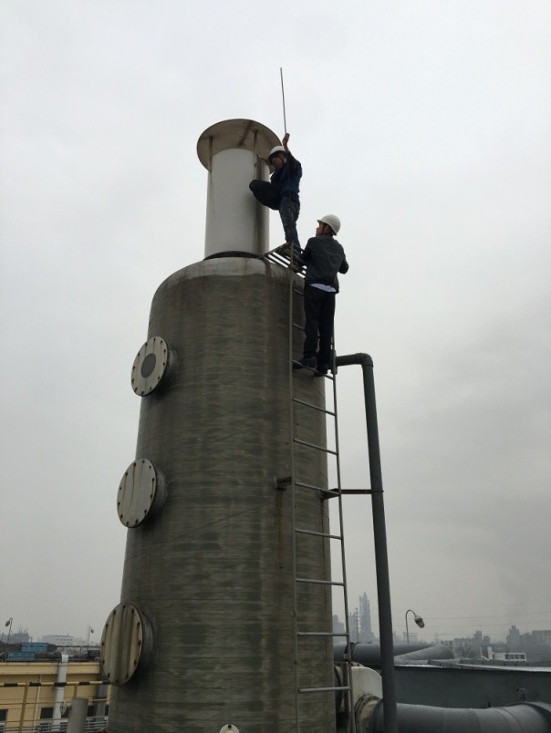 一、 采樣監測篇 對于環境監測人員來說,污染源廢氣監測是一項又苦、又累、又臟、又險的工作。有恐高的人別說在高空作業,甚至向下望兩眼都不敢,但現場監測的工作人員卻已習以為常。作為浙江聚光檢測的采樣人員,所有新員工入職后先要學會的就是擺脫恐高癥。冬天,監測平臺上四面透風,北風呼呼吹,整個人都快凍僵了。