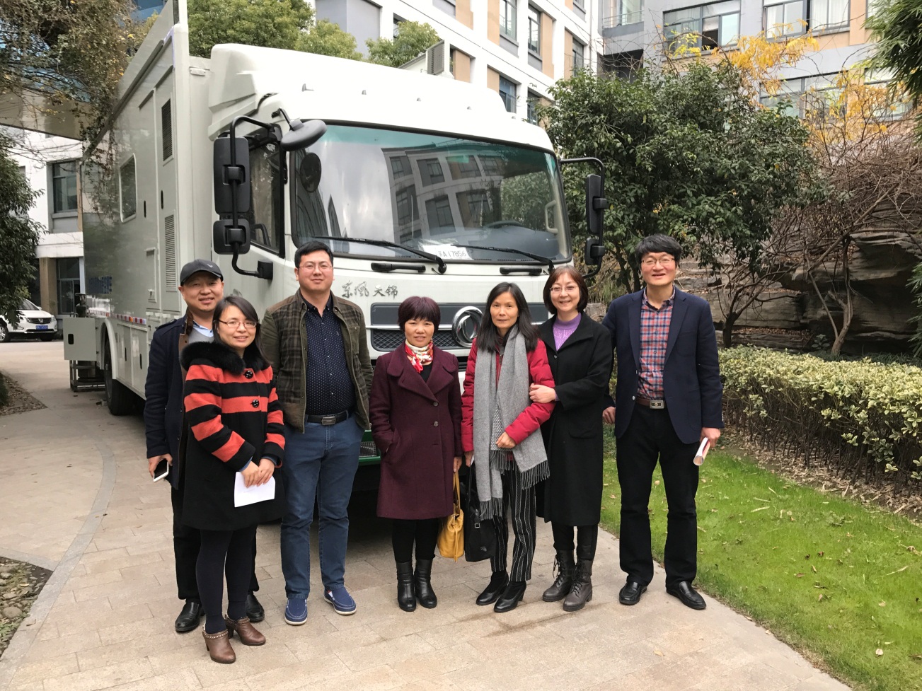 評審專家與浙江聚光檢測工作人員在移動實驗室前合影