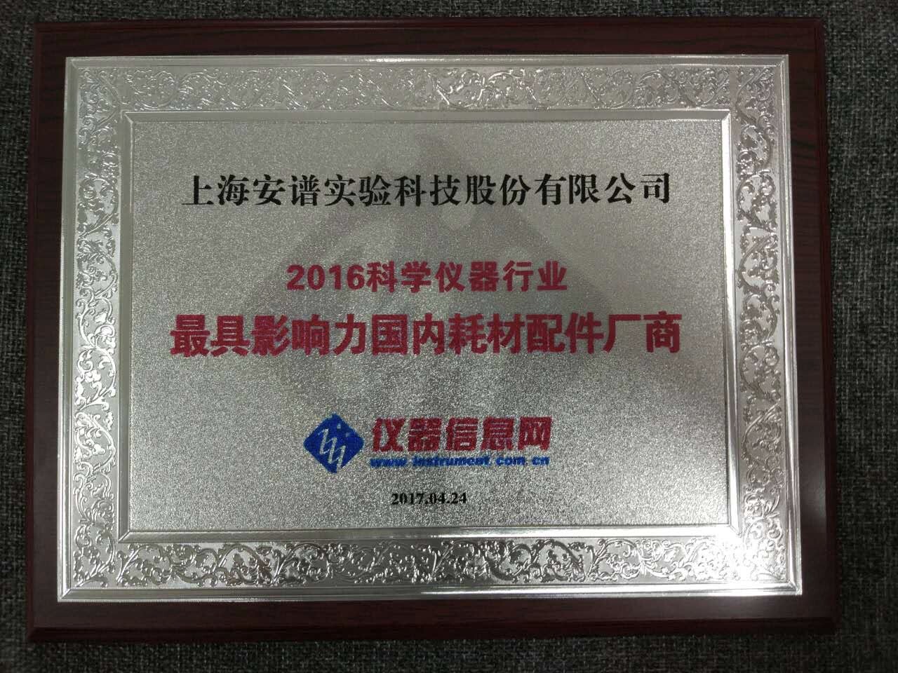 2017年4月24日,中國科學儀器行業的“達沃斯論壇”——2017(第十一屆)中國科學儀器發展年會(ACCSI 2017)在南京國際青年會議酒店召開。在ACCSI 2017的重頭戲——年度儀器及檢測風云榜頒獎盛典上,聚光科技(杭州)股份有限公司(以下簡稱“聚光科技”)下屬子公司上海安譜實驗科技股份有限公司(以下簡稱“安譜實驗”)連續第五年獲得“最具影響力國內耗材配件廠商”稱號,安譜實驗母公司——聚光科技蟬聯“最具影響力國內生產廠商”榮譽稱號。