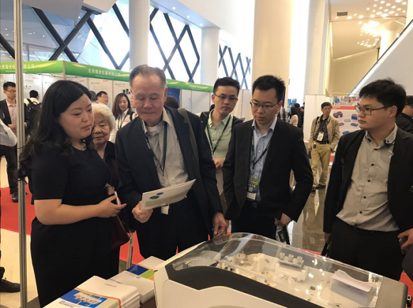聚光科技實驗室業務平臺工作人員向參展嘉賓詳細介紹產品