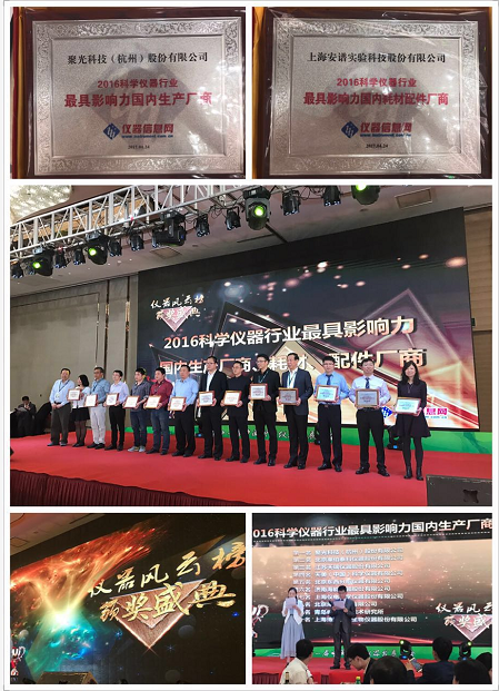 24日晚上,ACCSI 2017如期舉辦了“儀器風云榜頒獎盛典”。在這一科學儀器年度重頭戲中,聚光科技連續第七年榮獲“2016科學儀器行業最具影響力國內生產廠商”獎項,聚光科技下屬子公司安譜實驗也是連續第五年獲得“2016科學儀器行業最具影響力國內耗材配件廠商”獎項。憑借這兩個ACCSI2017的核心獎項,聚光科技在中國科學儀器行業的“達沃斯論壇”上再次大放異彩。兩項大獎,是從儀器信息網的千余家參展商中,根據廠商的銷售收入、人員規模、研發實力以及用戶對廠家的關注程度,綜合數據分析后得出的客觀結果,是對聚光科技在過去的一年中所獲得的市場佳績、所承擔的行業責任、所取得的行業地位等類別的綜合肯定,是對聚光科技綜合實力的褒獎。