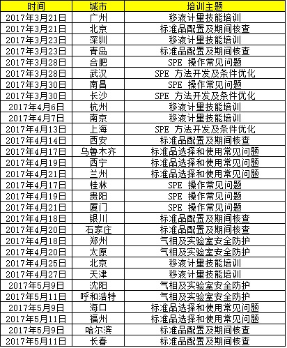 為了幫助實驗人員進一步提升耗材操作的規范性、準確性和專業性,聚光科技(杭州)股份有限公司(以下簡稱“聚光科技”)下屬子公司上海安譜實驗科技股份有限公司(以下簡稱“安譜實驗”)于3月21日至5月11日在全國范圍內開展了2017年上半年巡回培訓。此次培訓圍繞七大主題:移液計量技能、SPE操作常見問題、SPE方法開發及條件優化、標準品使用注意事項、標準品期間核查、氣相毛細管柱的選擇和注意事項及實驗室安全防護。在50天內完成30場培訓,共計吸引4250人次參與,培訓范圍、規模及參與人數均突破安譜實驗往年記錄。