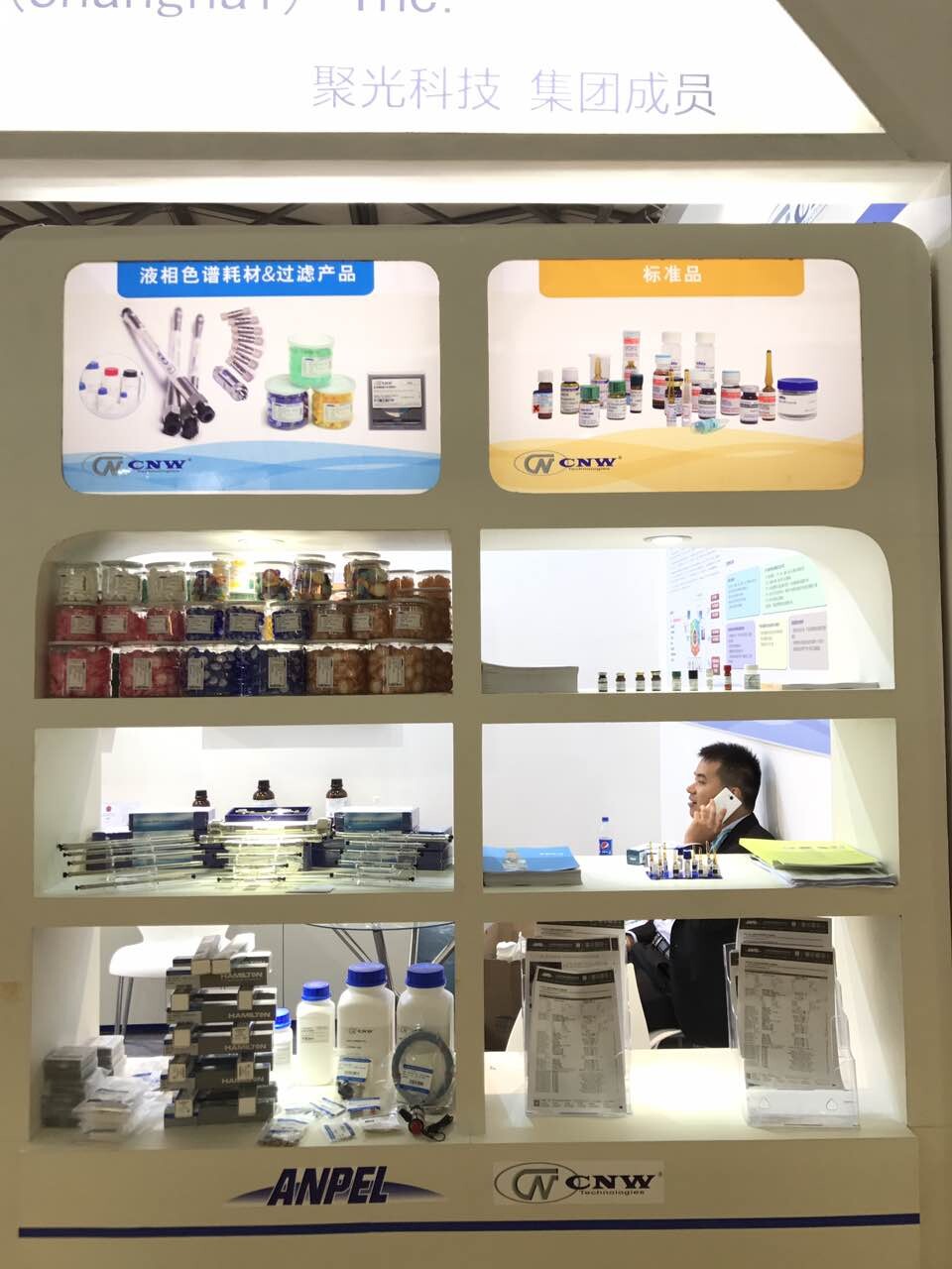 作為中國實驗用品供應鏈管理服務商,安譜實驗展出了一系列包括卡爾費休試劑、計量器具、樣品瓶、液相色譜耗材等明星產品,尤其是自主研發的CNW品牌液相色譜柱、標準滴定溶液等,充分展現了安譜實驗的研發能力和產品優勢,吸引不少客戶來到展臺咨詢及洽談。