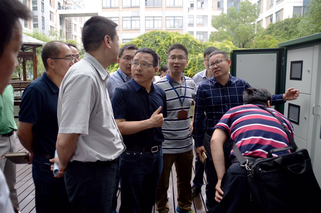 柏仇勇站長一行參觀了園區內正處于監測運行狀態的1平米一體化微型水站。微型水站具備國標法、智能化、模塊化、雙程化設計特點,適用于城市內小流域監測,站房綠色設計,與生態景觀融合。此外,還參觀了4平米、8平米的小型水站。