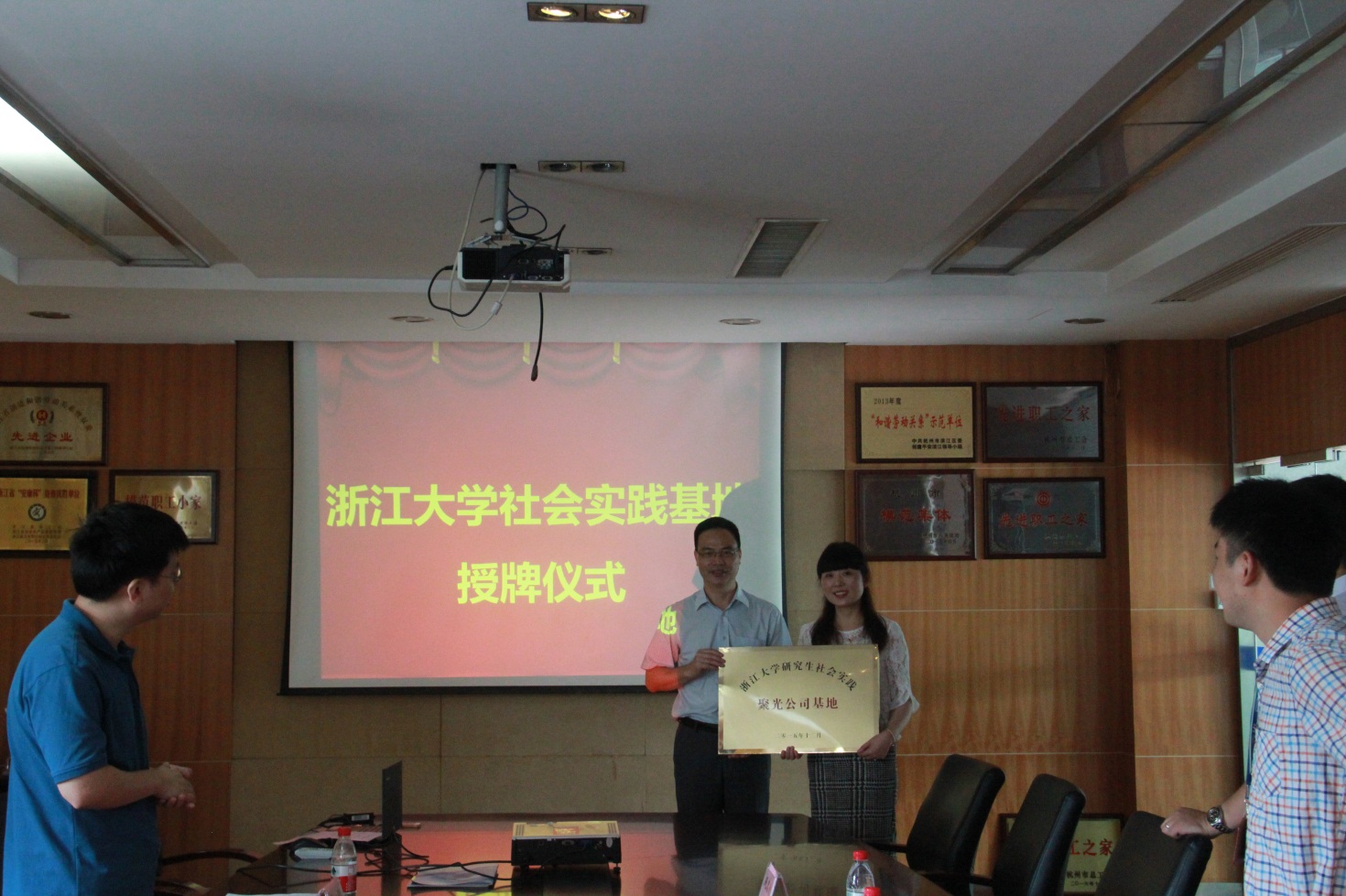 2017 年7月10日上午9時,浙江大學環境與資源學院研究生社會實踐聚光基地啟動授牌儀式暨2017年聚光公司浙大校友座談會在聚光科技(杭州)股份有限公司(以下簡稱“聚光科技”)舉行。聚光科技人力資源部副總監姜曉竹、研發部副總工趙忠欣、優秀員工代表徐義亮,浙大環資學院黨委副書記兼紀委書記包永平、院博士生社會實踐基地指導教師堯一駿、莊樹林、院團委書記兼研究生輔導員柳小毅及參加實踐的三位博士生參加了該儀式。
