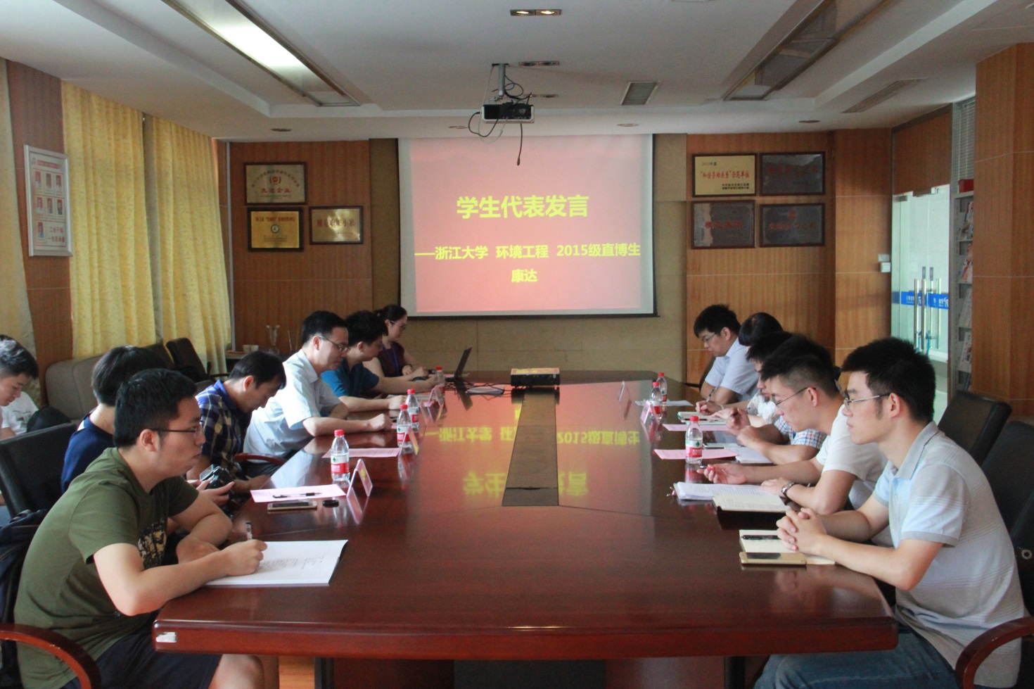 浙大環資學院2015級直博生康達和聚光科技員工、浙大環資校友徐義亮分別代表參與實踐的博士生與聚光科技的優秀員工進行發言。康達說到,作為實習生應向各位領導、前輩認真請教,領悟“傾心投入,分享成功”的企業精神,踐行“創新進取,激情高效,公正尊重,開放共贏”的企業價值觀,并代表全體實踐隊員向各位領導和老師保證,實踐期間一定會嚴格要求自己,遵守紀律,克服困難,團結協作,全力以赴,力爭圓滿完成實踐任務。徐義亮先生對學校領導老師和三位博士生的到來表示歡迎,并祝愿參與實踐的博士生找到適合的崗位,盡快融入聚光科技的大家庭,分享成功,放飛自我。
