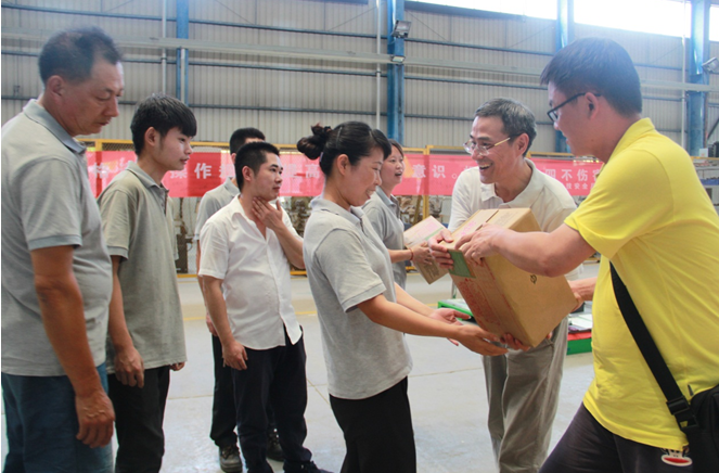 7月27日,工會同事來到聚光科技聞堰成品倉,看望、慰問奮戰在高溫一線的廣大職工,為他們送上肥皂、花露水、洗衣粉和飲料,為職工們帶來了絲絲“清涼”。