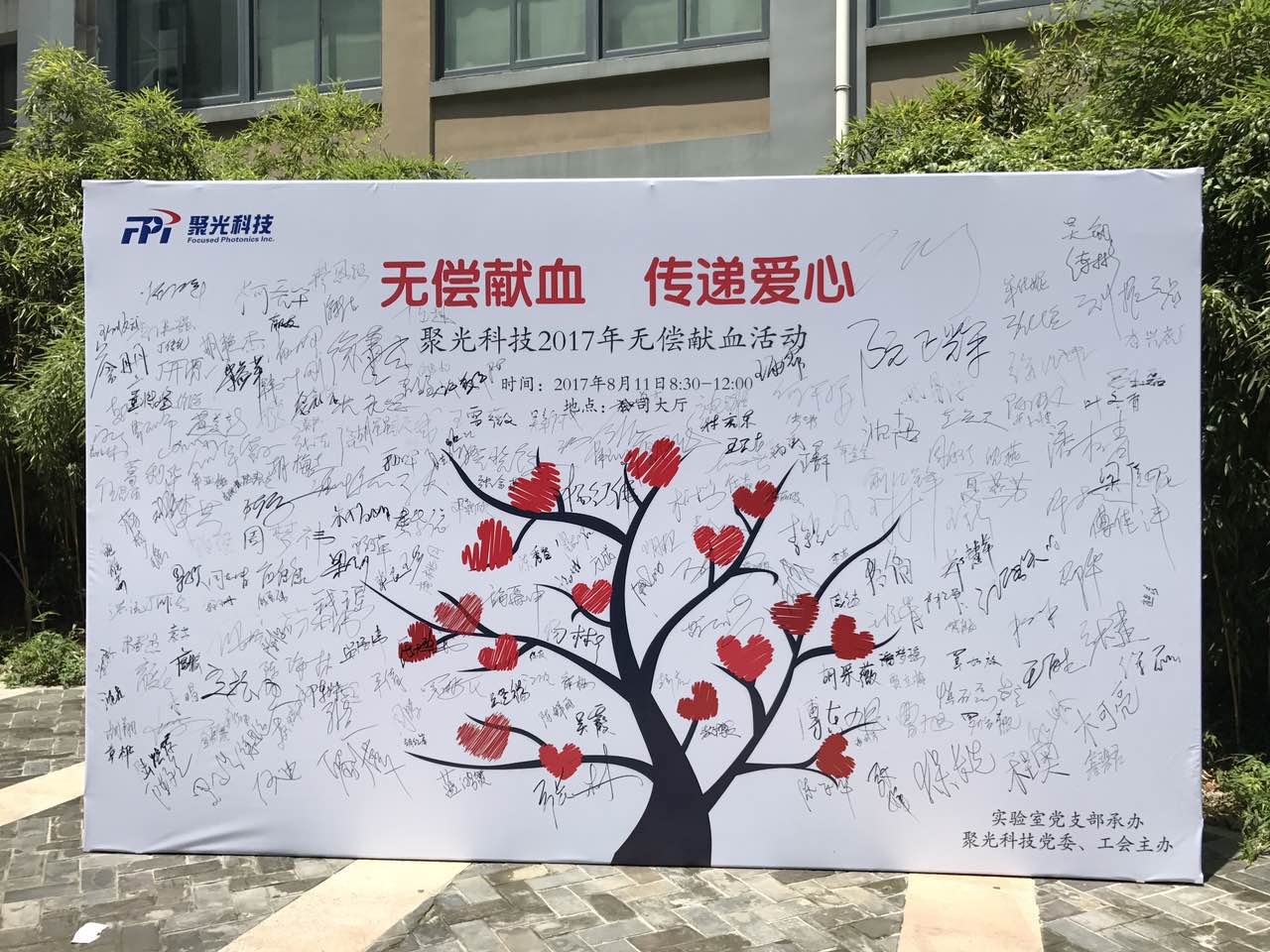 值得一提的是,8月10日中午,在食堂門口舉行的“無償獻血 傳遞愛心”的簽名活動,營造了良好的氛圍,可謂是今年獻血活動的一大亮點。作為無償獻血活動的前期動員工作,此次簽名墻活動取得圓滿成功,吸引了大量員工駐足,達到了一定的宣傳效果,展現了全體員工對無償獻血活動的支持與關心。