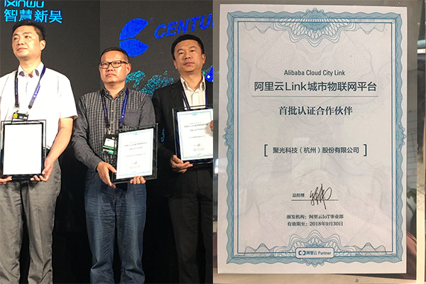 2017年10月11日,2017杭州云棲大會如期開幕。10月12日,聚光科技(杭州)股份有限公司(以下簡稱“聚光科技”)受邀參加云棲大會-阿里云IoT智能城市合作伙伴峰會,成為阿里云Link城市物聯網平臺首批授牌合作伙伴。聚光科技環境安全事業部總經理孫越應邀參加授牌儀式。