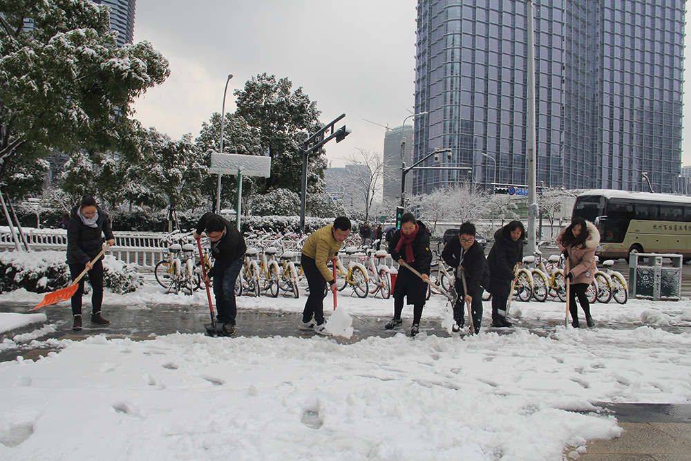夜來城中數寸雪,銀裝素裹輾冰轍。暴雪來襲,雪景美化了聚光中心,但也給員工的上下班帶來了不便。為保障大家正常上下班,以及周邊的安全出行,在聚光科技(杭州)股份有限公司(以下簡稱“聚光科技”)黨委書記陳熒平的號召和組織下,聚光科技的黨員同志,充分發揮黨員的先鋒模范作用,開展了一次掃雪除雪活動。