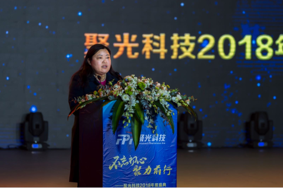 聚光科技總經理彭華女士隨后致辭,她表示,過去的一年是努力拼搏的一年,聚光人同心同德、努力奮斗,實現了整體業績的持續增長;是公司文化輸出的一年,公司進行了草莓视频iOS的推廣,取得了很好的成績;是蓄勢待發的一年,公司擴大了團隊規模,提升了團隊的活力和朝氣,人才濟濟,為2018年發展奠定了堅實的基礎。希望在新的一年里,聚光人堅持發揚創新進取、激情高效、公正尊重、開放共贏的文化精神,創造聚光科技新的歷史,更上一層樓。