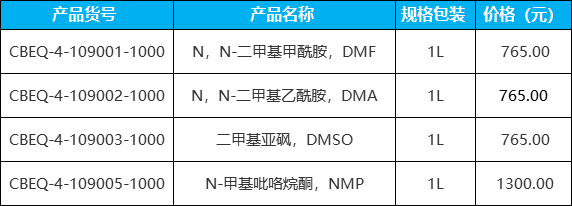 CNW氣相色譜頂空溶劑包含USP<467>和EP2.4.24方法中列出的用于水溶性樣品和非水溶性樣品中有機殘留溶劑分析常用的頂空溶劑,如DMSO、DMF、DMA、NMP。