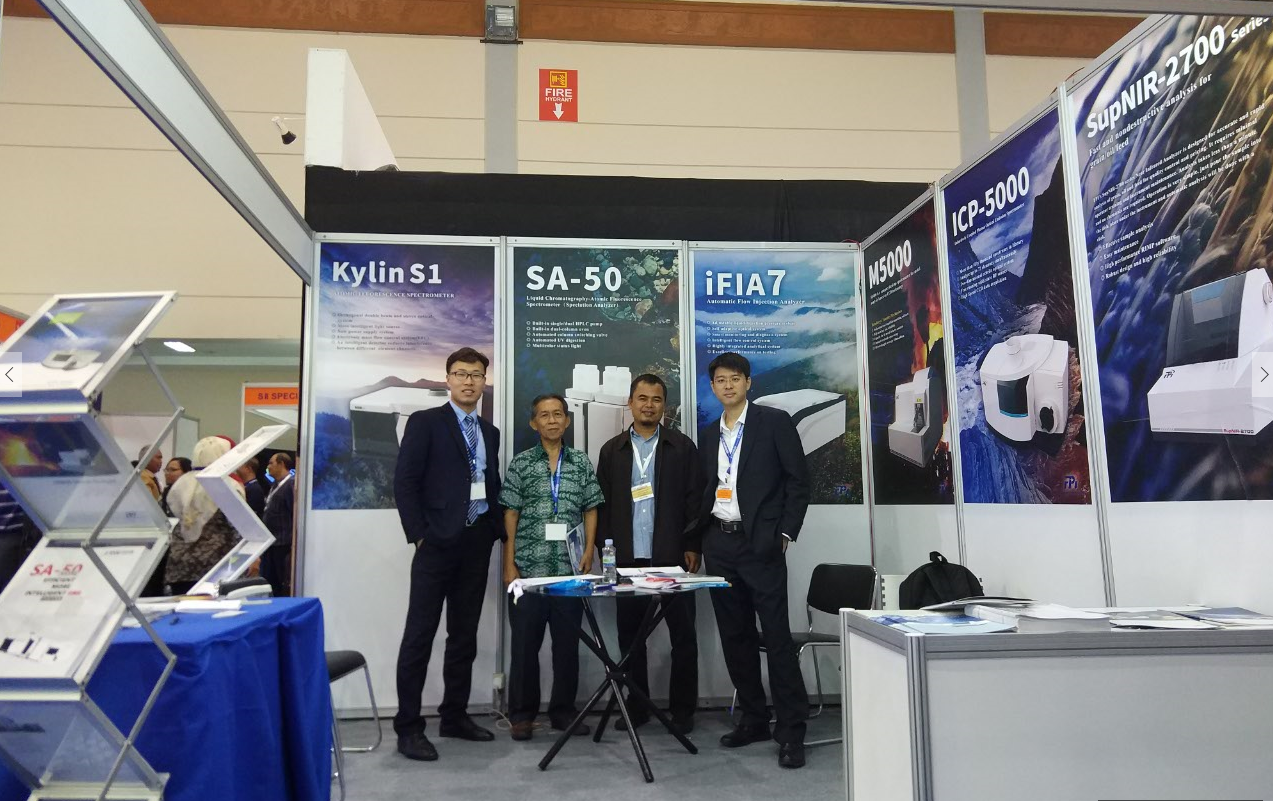 2018 Lab-Indonesia(印尼實驗室展) 2018年4月4日-6日,Lab-Indonesia(印尼實驗室展)在雅加達會議中心盛大舉行。該展會歷時三天,展覽面積約 2300平方米,作為印尼唯一聚焦實驗室領域的展會,Lab-Indonesia專注于石油石化、化工、制藥、藥物、生物(微生物)、食品、健康、電子、光學、測繪勘探、環保等相關產業。展會匯集了200多家展商及數萬名專業觀眾,分別來自中國、捷克,法國,馬來西亞,德國、印度,韓國,印度尼西亞,西班牙及新加坡等世界各國。聚光科技下屬子公司聚光盈安聯合吉天儀器攜自主研發的M5000火花直讀光譜儀、M4000火花直讀光譜儀ICP-5000電感耦合等離子體發射光譜儀、SupNIR-2700系列近紅外分析儀受邀出席此次會議。