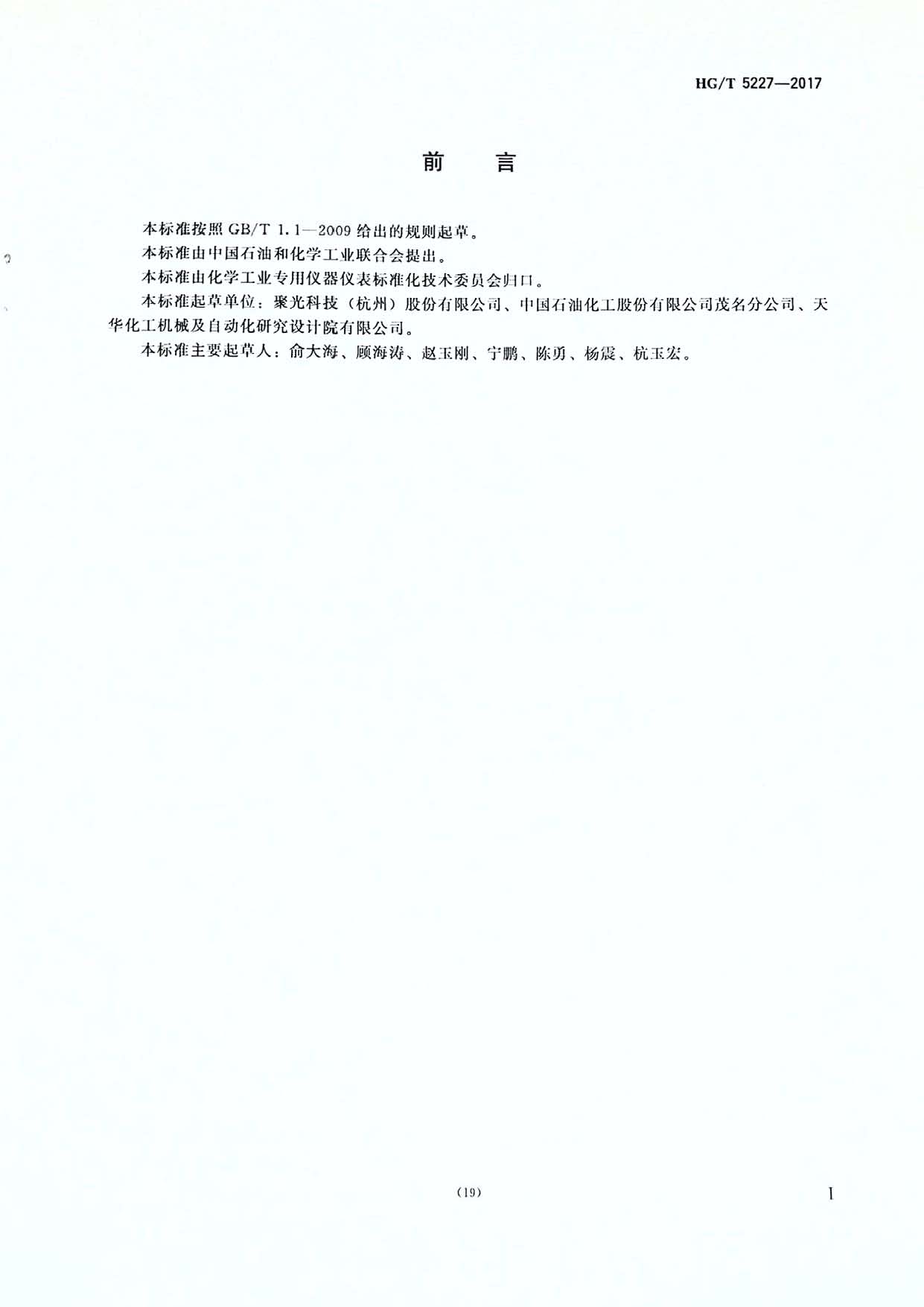 本標準由中國石油和化學工業聯合會提出,聚光科技牽頭,聯合中國石油化工股份有限公司茂名分公司和天花化工機械及自動化研究設計院共同完成。