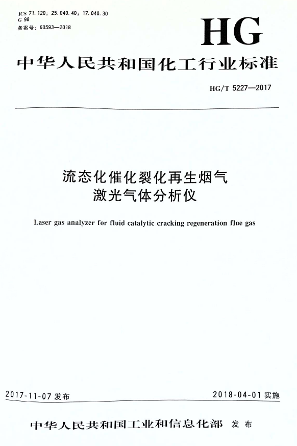 近日,國家工信部發布《HG/T 5227-2017流態化催化裂化再生煙氣激光氣體分析儀》(以下簡稱“標準”),標準由聚光科技(杭州)股份有限公司(以下簡稱“聚光科技”)等三家單位共同參與起草,于2018年4月1日起正式實施。
