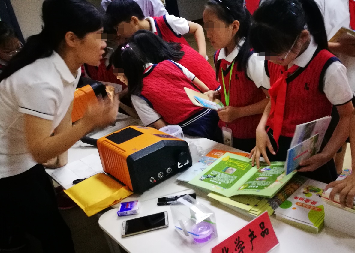 活動采取圖文并茂、寓教于樂的形式,科普了生活中常見的學習用品和玩具質量問題及安全防范常識,提高了學生正確購買和使用文具、玩具的能力。活動現場,省質安院物理檢測研究中心仇嘉博士、化學檢測研究中心主任張東雷、高級工程師王瑾、聚光科技應用工程師王海東等人分別對搖搖車、臭屁彈、水晶泥、劣質水彩筆等產品的危害進行了講解,并對學生自帶的文具用品進行了現場檢測。