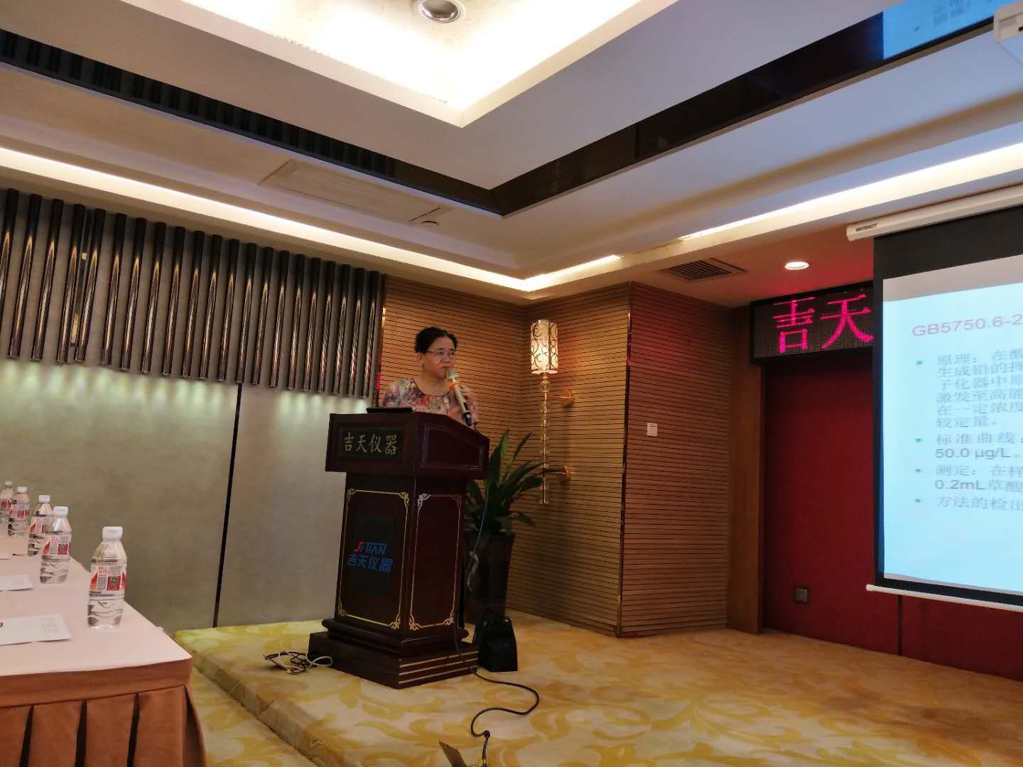 吉天儀器產品經理郭夢婷就吉天儀器的六大產品線做了詳細介紹,尤其突出了吉天儀器的 “未來已來 引領時代的原子熒光系列新品”,“智慧分析 助力遠的iFIA7全自動多參數流動注射分析儀”以及“為快而生 以穩見長 想您所想的APLE-3500全自動快速溶劑萃取儀“的三款新產品原理和特點。用戶對吉天儀器的產品有了更多的了解,并且得到了客戶高度關注和一致好評。