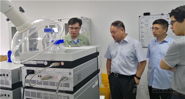 安譜實驗公司總經理夏敏勇、董事長兼副總經理郭曉群帶領申屠獻忠總裁深入參觀了安譜實驗的校準計量實驗室、標準物質研制中心(RMP實驗室)、中心實驗室、有機合成實驗室和自動化生產車間,感受安譜實驗的企業建設。