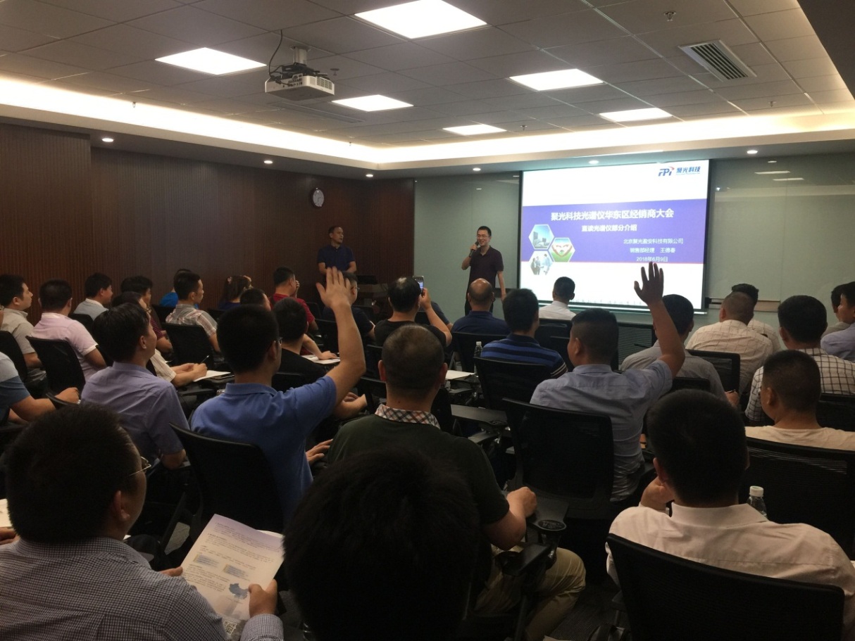 會議上,產品工程師為來賓詳細介紹了聚光盈安的各類產品:臺式全譜直讀光譜儀、電感耦合等離子體光譜儀、X熒光手持式光譜儀、手持式激光誘導擊穿光譜儀等。從產品理念、賣點講解、售后支持等方面一一展開,針對目前市場上經銷商遇到的一些難題與儀器儀表行業存在的弊端做了總結與梳理,讓經銷商們對產品機型了解更加詳盡,對儀器儀表市場認識更加透徹!最后聚光盈安銷售部經理王德春先生為參會嘉賓詳細透徹的剖析了目前儀器儀表行業的市場現狀及發展,為參會嘉賓分析目前的市場競爭情況,從中歸納出目前廠家與經銷商面臨的機遇與挑戰,講解了行業未來發展趨勢,并全方面解讀了聚光盈安對蘇滬皖區域經銷商的大力政策支持。