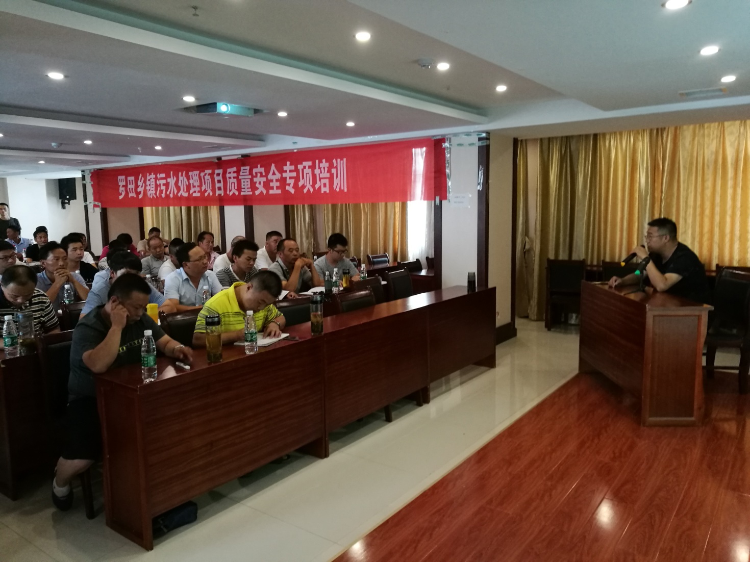 為加強管網建設工作規范,2018年7月22日,由羅田縣住房和城鄉建設局(以下簡稱“住建局”)主辦,聚光長源水務(湖北)有限公司(以下簡稱“項目公司”)承辦的羅田縣鄉鎮污水處理質量安全專項培訓在羅田縣金源大酒店如期舉行。住建局領導、項目公司全體、監理項目部全體、設計方代表、施工方12個鄉鎮項目負責人、質檢員、安全員、施工班組長等70多人參與了本次培訓。