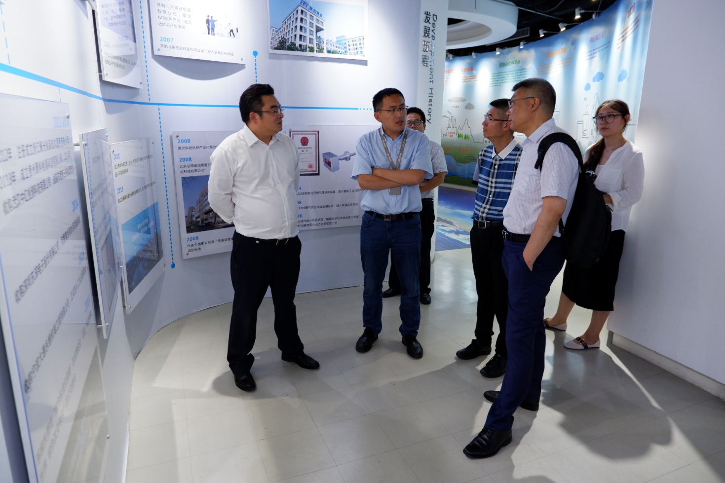 2018年7月15日下午,陜西省西安市高新區管委會副主任史康度一行3人,在聚光科技(杭州)股份有限公司(以下簡稱“聚光科技”)董事長葉華俊、水環境業務板塊副總經理陳道東、水環境業務板塊第一事業部大項目銷售總監李大偉、環境安全事業部解決方案部副經理陳俠勝等人的陪同下,蒞臨聚光科技考察指導。