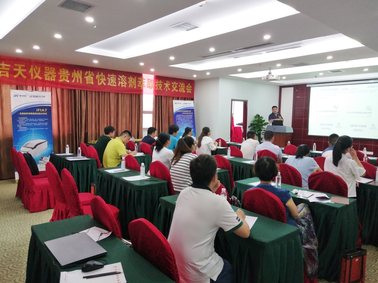 “走遍大地神舟,最美多彩貴州”,2018年7月26日,聚光科技(杭州)股份有限公司下屬子公司北京吉天儀器有限公司(以下簡稱“吉天儀器”)“2018吉天儀器貴州快速溶劑萃取技術交流會”在多彩的貴陽市成功舉辦。來自貴州省及周邊地區的疾控、環保、第三方檢測等領域的多位專家學者參加了此次交流會,并就吉天儀器產品的功能、使用等方面進行了深入交流。