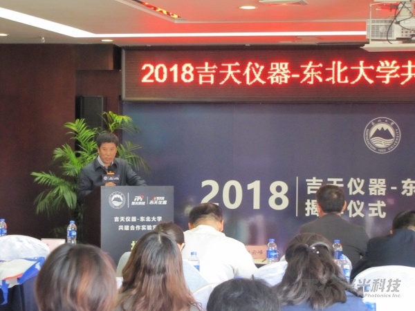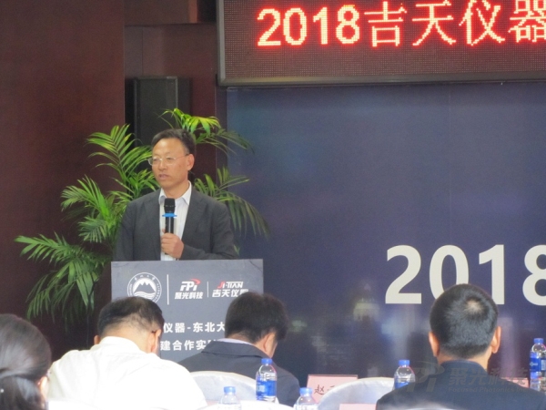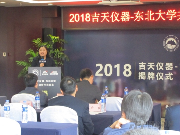 隨后,吉天儀器董事長彭華女士上臺致辭,為大家介紹了吉天儀器公司歷史以及未來戰略發展規劃。她提到:吉天儀器是我國具有強大影響力的專業從事實驗室分析儀器研發、制造、銷售的高科技企業,同時也是國內實驗室分析領域產品覆蓋面廣、極具規模的實驗室業務供應平臺之一。東北大學有著雄厚的科研實力,在以科技力量推動東北經濟及全國經濟發展上面的作用是有目共睹的。彭總表示共建合作實驗室的成立,有助于雙方科研研究的開展、檢測方法的開發,并就雙方在人才交流及相關學科建設等方面開展合作表達了深切的愿景。
