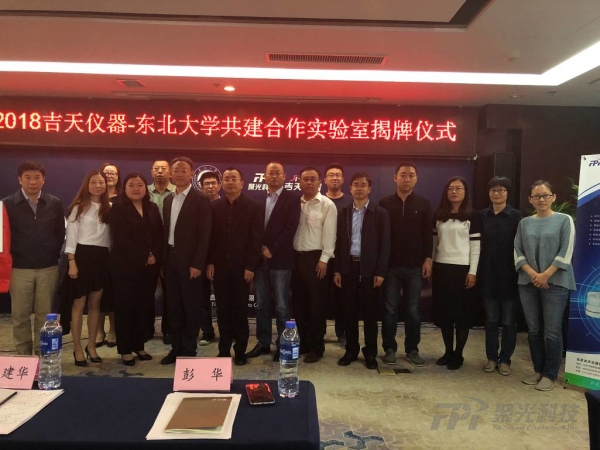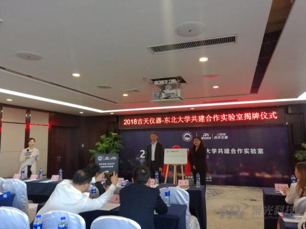 在幾位領導發言過后,東北大學副校長王建華教授、吉天儀器董事長彭華女士上臺為“吉天儀器-東北大學共建合作實驗室”揭牌,宣布雙方共建合作實驗室正式成立,開啟了雙方強強聯手共同推動產業技術水平提升的新征程。共建合作實驗室的成立為進一步落實產學研合作提供了更好的交流平臺,共建雙方借此平臺科研互補、共謀發展,以期發揮雙方優勢力量。