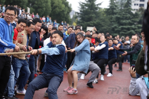 運動會的第一塊金牌,在拔河項目中產生,由環資一隊摘得。在田徑賽場上,各參賽隊伍你拼我趕,都拿出了最好的狀態,賽出了水平,更賽出了風格。加油聲、吶喊聲在賽道上此起彼伏。