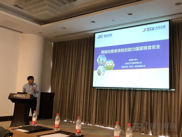 展會次日,聚光科技旗下子公司北京吉天儀器有限公司(以下簡稱“吉天儀器”)應邀出席由 “2018 MICONEX食品安全檢測儀器及技術發展論壇”,吉天儀器近紅外產品經理在論壇上做了題為《網絡化糧食快檢儀助力國家糧食安全》的精彩報告。該報告以國家糧食安全現狀為出發點,從糧食總量安全、糧食質量安全等多方面入手,闡述了在物聯網時代,聚光科技的糧食安全檢測解決方案。剖析深入、見解獨到的報告獲得了在場專家學者們的一致肯定。