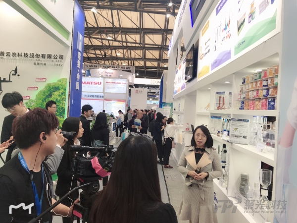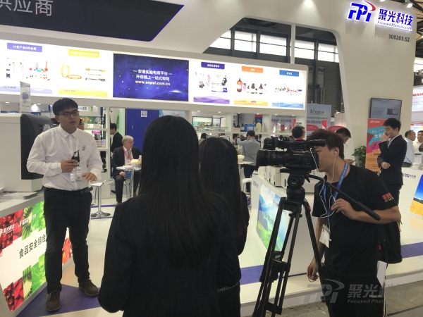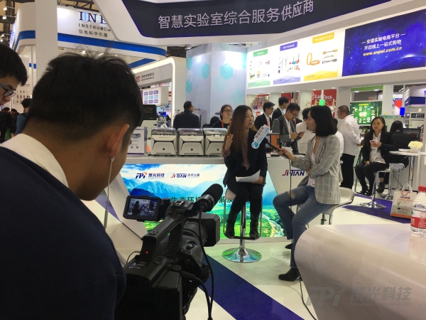 聚光科技實驗室業務平臺的整體實力及展示亮點,吸引了多家媒體至展臺現場采訪。
