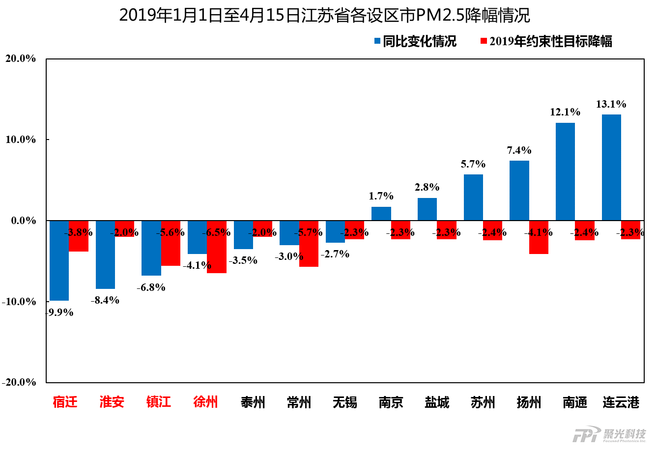 喜報 江蘇省通報了13個設區市2019年度1月1日至4月15日環境空氣質量情況,由聚光科技(杭州)股份有限公司下屬子公司無錫中科光電技術有限公司(以下簡稱“中科光電”)提供空氣質量保障績效服務的宿遷市、淮安市、鎮江市1月1日至4月15日的PM2.5同比下降率包攬了江蘇省前三名,宿遷、淮安躋身“雙達標”城市。至此,全省“雙達標”城市增加到4個。此外,中科光電也助力常州、徐州有效降低了PM2.5濃度值。