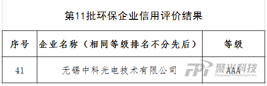 AAA級環保信用企業,這是聚光科技(杭州)股份有限公司下屬子公司無錫中科光電技術有限公司(以下簡稱“中科光電”)的新名片。