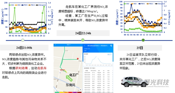 走航車迅速出動并做出研判,指導管控,見效明顯